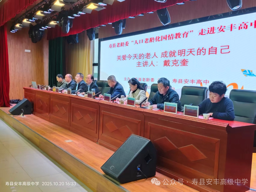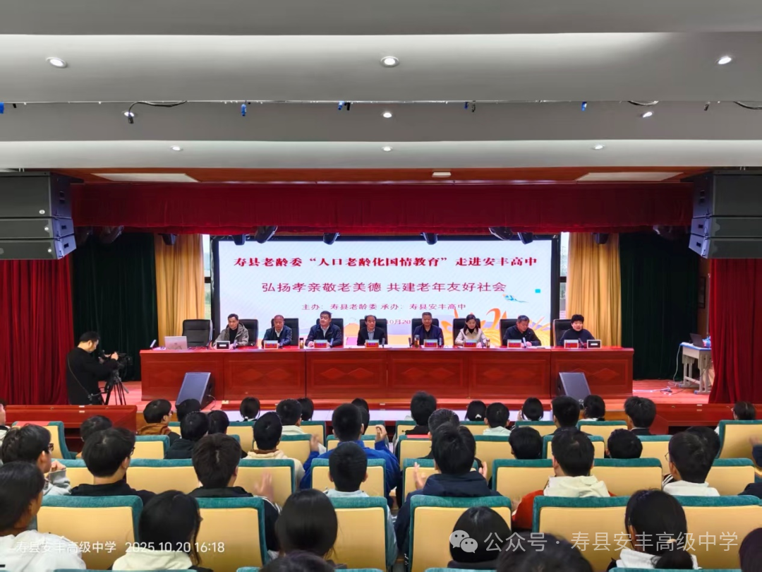 10月20日下午,由寿县老龄委组织的“人口老龄化国情教育”活动在寿县安丰高中顺利举行。本次活动以“弘扬孝亲敬老美德,共建老年友好社会”为主题,旨在引导学生增强敬老意识,树立正确的老龄观。
